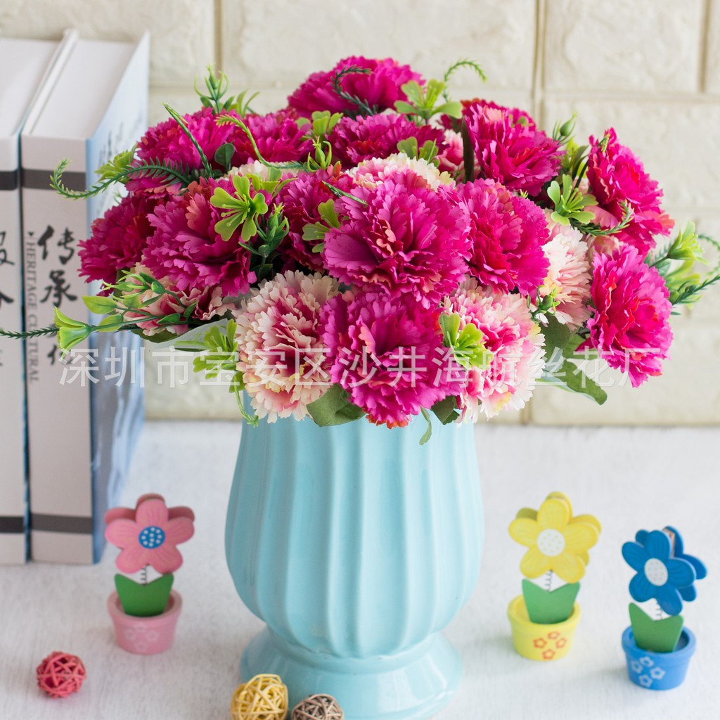 台灣現貨 7頭康乃馨仿真花束 教師節花束 母親節花束 絹花 人造花 假花 康乃馨花束 塑膠花 仿真花 擬真花 蝦皮購物